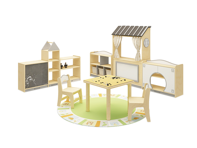 孩子们可以围绕着表演台开展各类情景游戏,对各种职业进行角色扮演,来模仿那些他们很感兴趣的生产劳动和生活体验,同时在扮演中培养沟通交流能力。