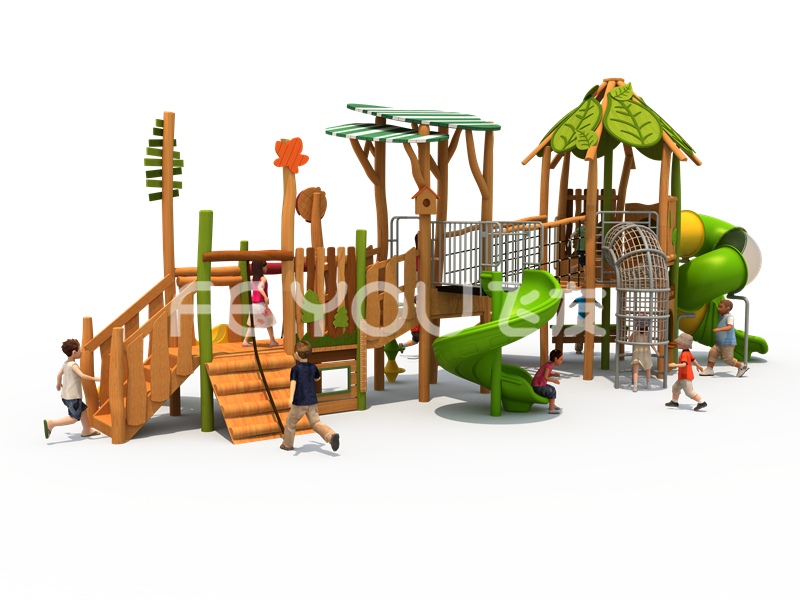 FY302-11社区少儿木质游乐玩具-幼儿园大班大型实木滑滑梯